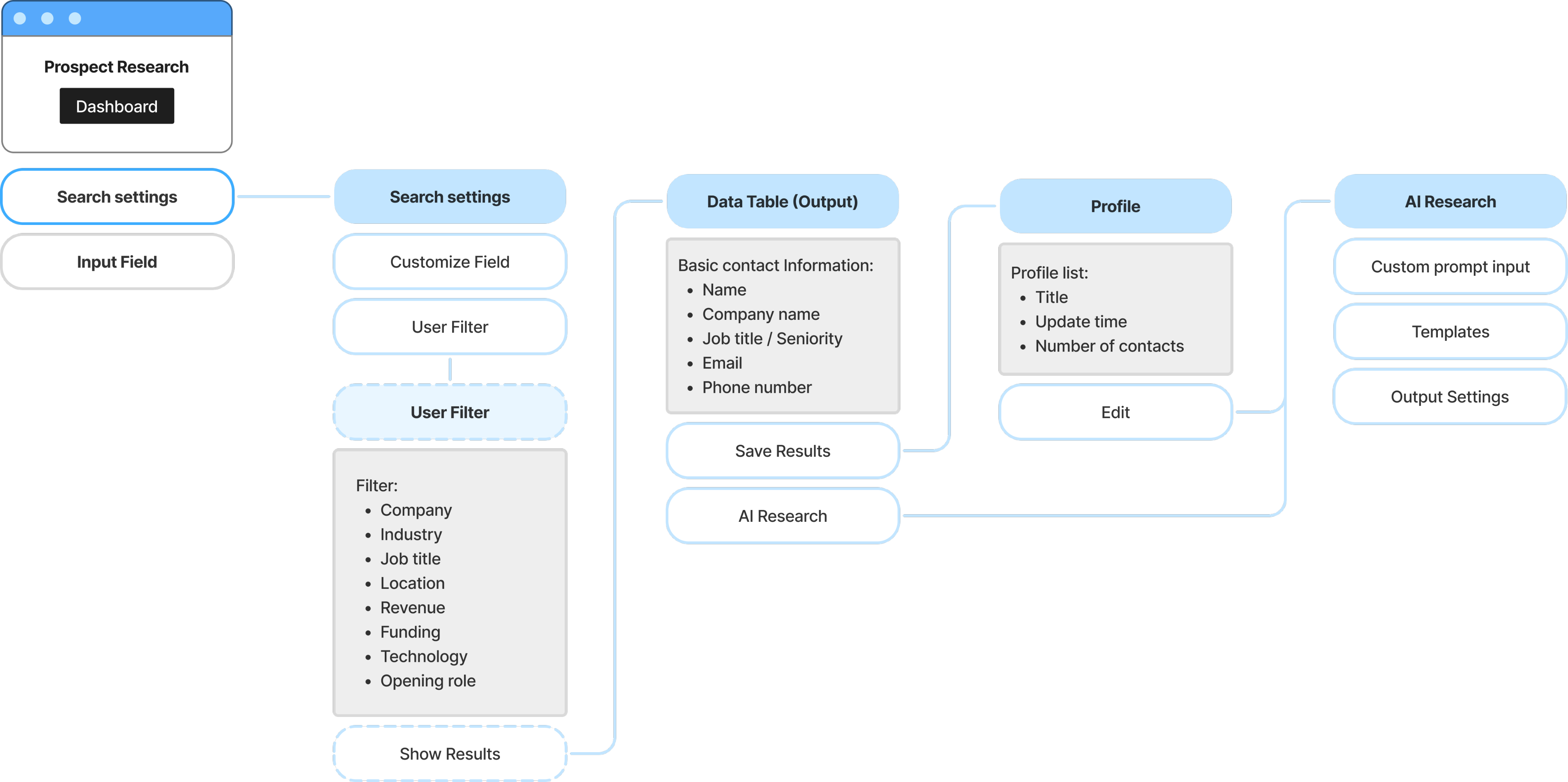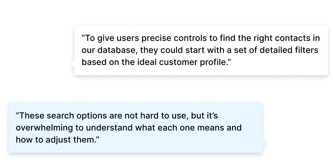 According to the research insight, I understood that an ideal prospecting experience must help users understand and refine their ideal customer profile (ICP), while also offer intelligent research that supports business insights and strategic pivots.