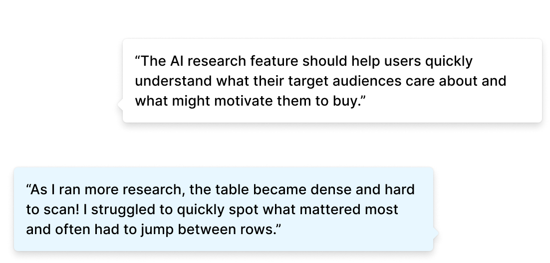 After we made an MVP, I ran 5 moderated usability sessions with our internal team. We weren’t only testing whether users could use the tool, but also testing whether they could trust it for further customer outreach. These sessions validated whether our workflow gave users enough clarity, rationale, and control to identify high-value prospects quickly and decisively.